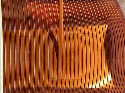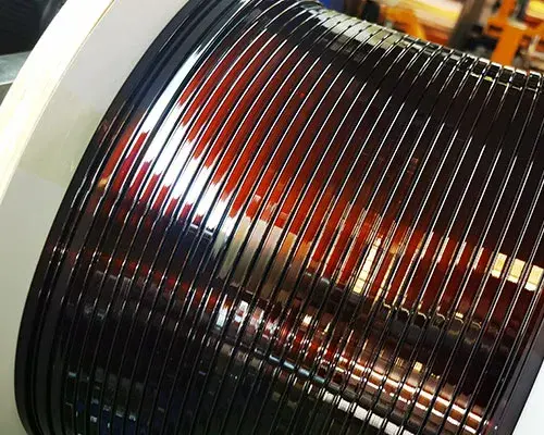 Class 240 Aromatic Polyimide Tape envelops the bare square copper magnet wire,…